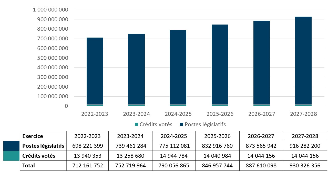 En ce qui a trait au Plan ministériel et au Rapport sur les résultats ministériels, montants présentés dans le Budget principal des dépenses.