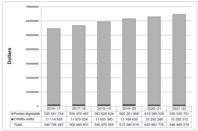 Les dépenses réelles du Commissariat en 2018‑2019 s’élevaient à 595 476 569 $.