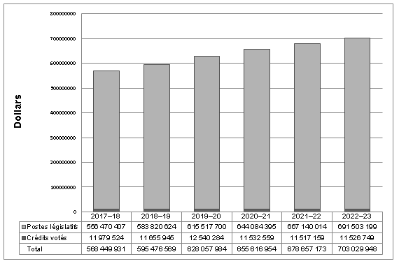 *Il s’agit d’un nouvel indicateur en vigueur depuis l’exercice 2018‑2019.Ressources financières budgétaires (en dollars)