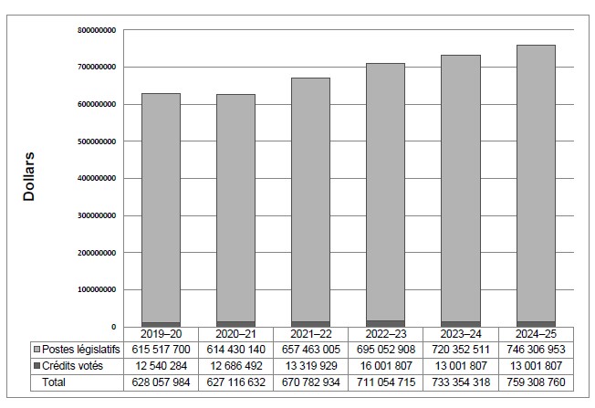 Les dépenses réelles du Commissariat en 2021‑2022 s’élevaient à 670 782 934 $.